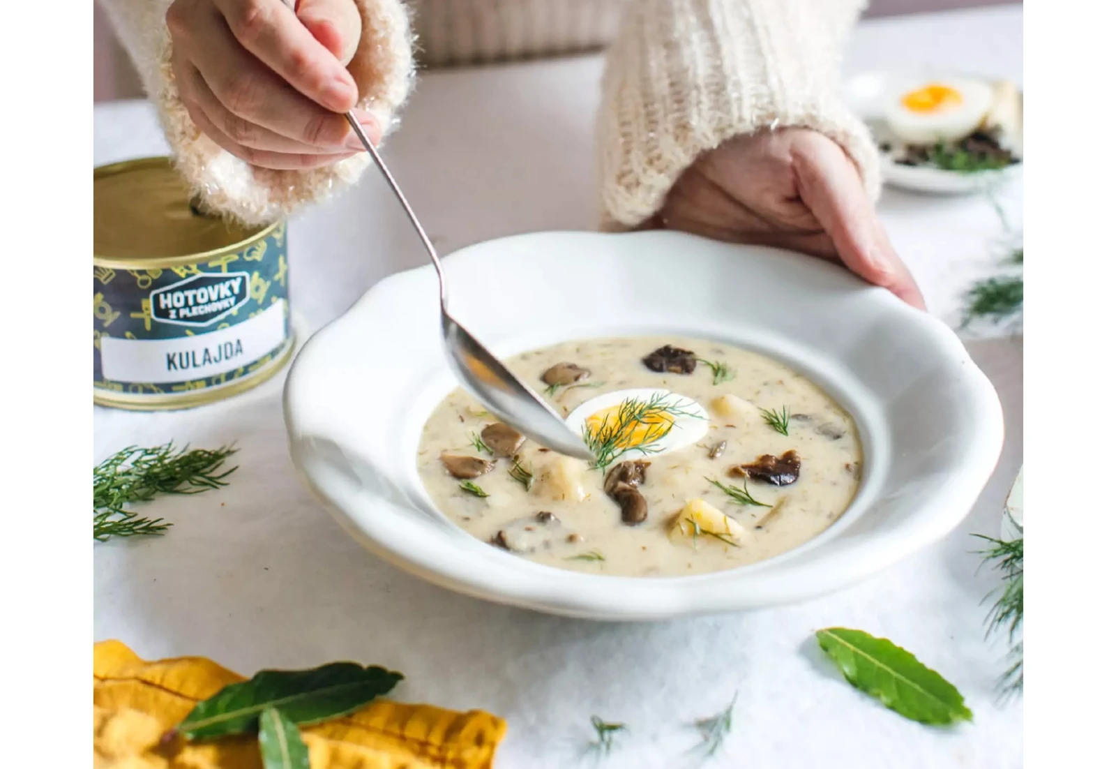 Tradiční česká kulajda pohladí vaši duši. Základem lahodné krémové polévky jsou houby, brambory, krémová smetana a mix koření, které dohromady vytvářejí intenzivní chuť a vůni. Právě Hotovky z plechovky nabízejí sterilizované hotové jídlo v konzervách vyrobené z lokálních surovin, které stačí jen zahřát a pochutnat si jako v restauraci. Ať už jste u vody a užíváte si rybaření nebo kempujete s rodinou a přáteli, tak stačí jen zahřát konzervu a dosyta se najíst. Balení 400ml je určeno pro bohatý oběd pro jednu osobu, 800ml postačuje pro dva lidi na plnohodnotné jídlo. Všechna jídla jsou slovenské výroby přičemž splňují všechny potravinářské standardy a jsou zárukou vysoké kvality.