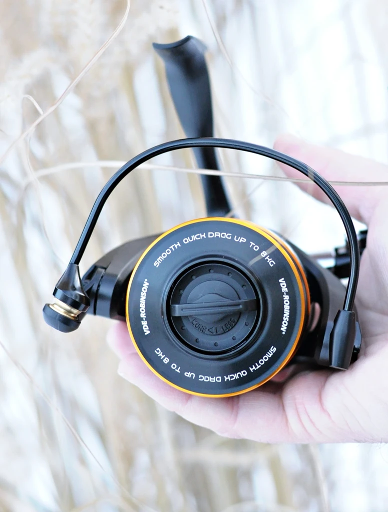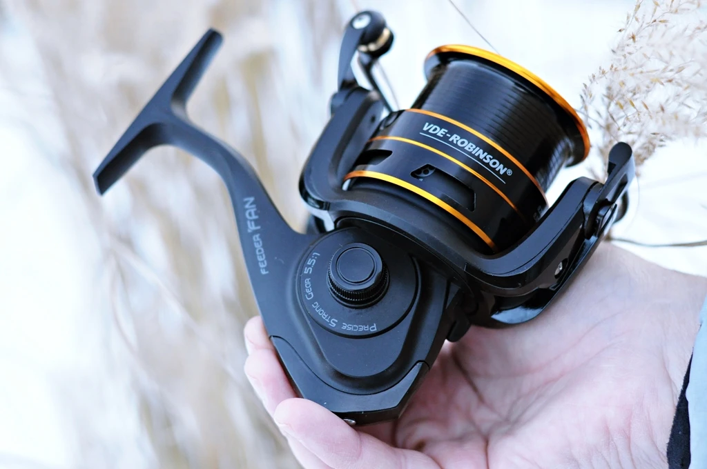 Značka Robinson představuje speciální feeder edici produktů, které byly vyrobeny v exkluzivní spolupráci s mistrovskou značkou Marcel Van Den Eydne, která je světovou špičkou v lovu na plavanou a feeder. Naviják Feeder Fan FD je spolehlivý kvalitní naviják s extra kvalitní a silnou multidiskovou brzdou typu Quick Drag od známé značky Robinson. Tento naviják je exkluzivně vyroben na lov feedrem a method feedrem přičemž zejména ve velikosti 506 je vhodný i pro lov větších ryb či kaprů. Hned na první pohled zaujme naviják odlehčeným tělem s výraznou rukojetí, která disponuje rychlosklápěcím mechanismem. Hlavní extra široká kovová duraluminiová anodyzovaná cívka ukládá precizní vlasec nebo šňůru a náběhová hrana zase zajišťuje rychlé odmotávání vlasce při náhodách. Spolehlivý chod zajišťuje až 6 ložisek a počítačem vyvážený rotor. Vyšší kvalitu zaručuje zesílený oblouk překlápěče, zvětšená rolnička s povlakem slitiny mosazi a oxidu titanu či náhradní grafitová cívka v balení.