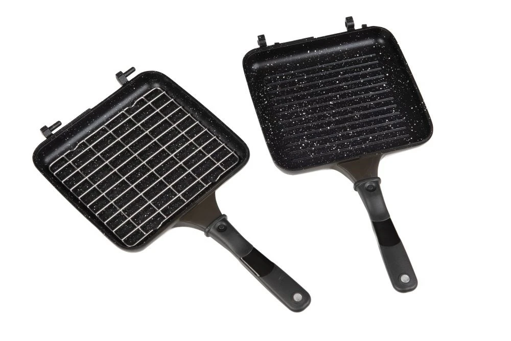 Fox Cookware Multi-Pan je univerzálna panvica určená pre rybárov, ktorí chcú pri vode pripraviť teplé jedlo rýchlo a prakticky. Robustné hliníkové telo zabezpečuje rovnomerné rozloženie tepla a kvalitný nepriľnavý povrch uľahčuje varenie aj čistenie. Panvica je vybavená odnímateľnou rukoväťou, takže nezaberá takmer žiadne miesto v taške či kufri.