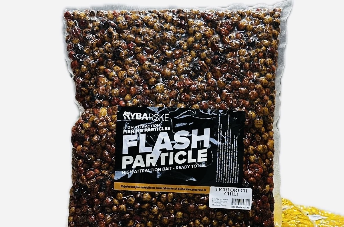 Partikel Flash Tygří ořech Chilli je připraven bez dalšího vaření a výborně se hodí i na zavážení pomocí zavážecích loděk, kde dokáže vytvořit mimořádně atraktivní krmné místo pro lov trofejních kaprů.