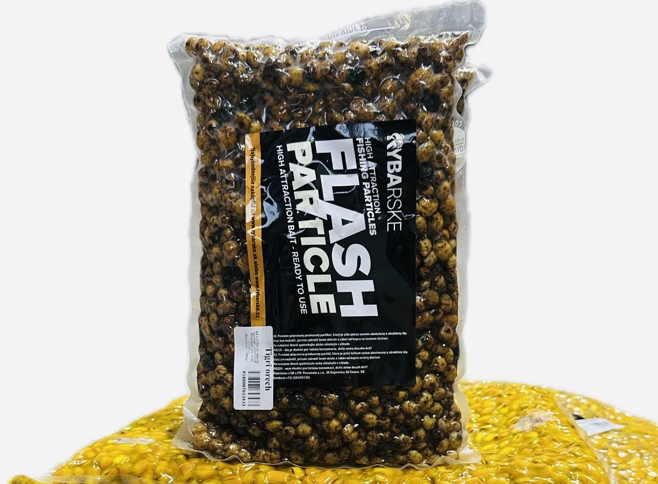 Partikel Flash Tygří ořech je připraven bez dalšího vaření a výborně se hodí i na zavážení pomocí zavážecích loděk, kde dokáže vytvořit mimořádně atraktivní krmné místo pro lov trofejních kaprů, ale jej můžete nastražit přímo na háček.
