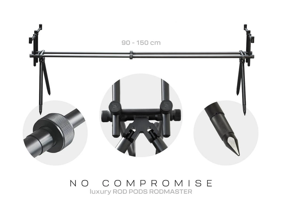Rodmaster je navržen tak, aby poskytoval spolehlivou oporu i při prudkých záběrech. Robustní rám zajišťuje pevnost, zatímco nastavitelné nohy umožňují přizpůsobit stojan nerovnostem terénu.